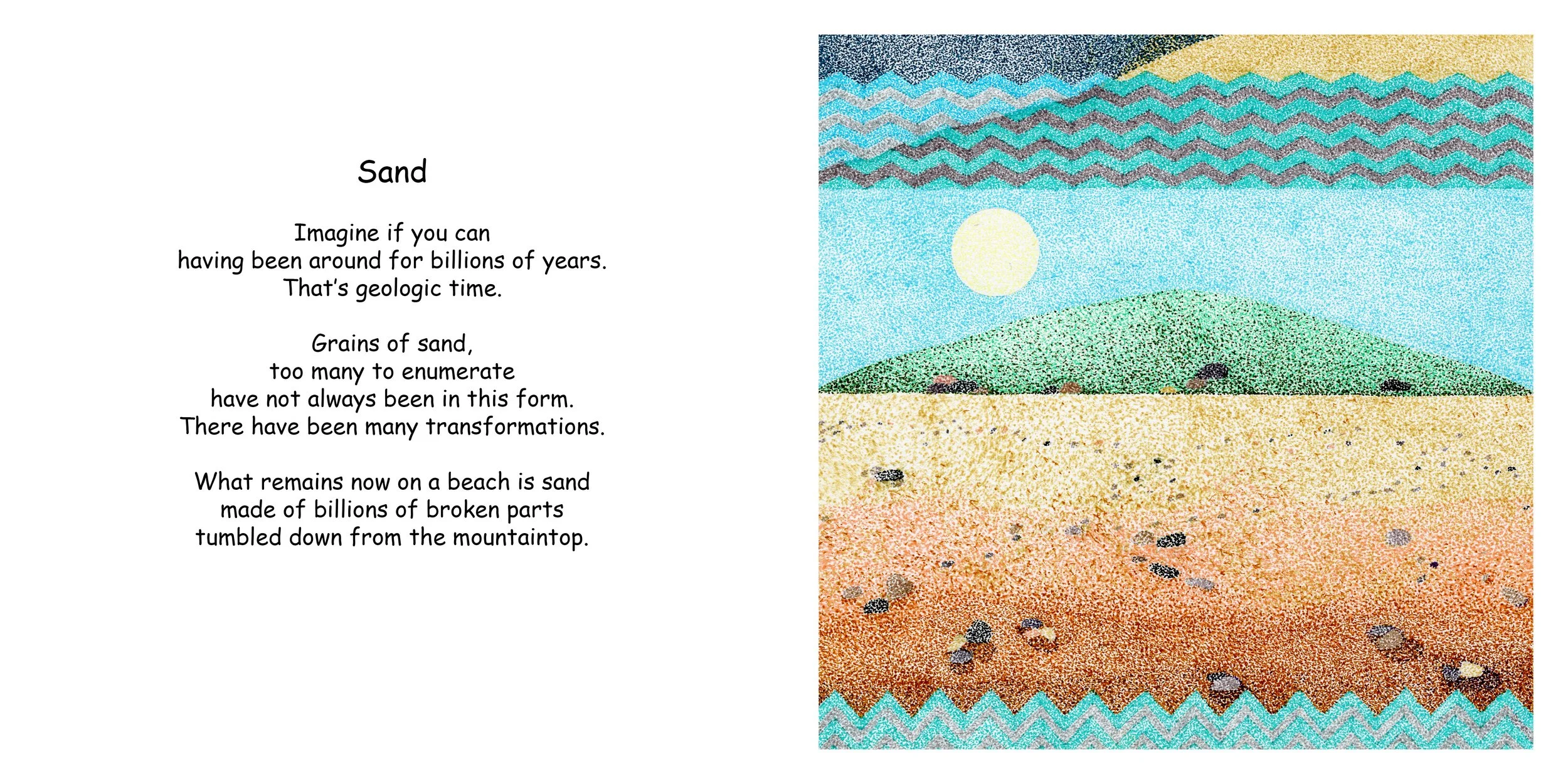 Imagine having been around for 13.8 billion years, not always in the same form but transformed many times. Rocks change, transform into different types of rock. Any kind of rock can change into any other kind of rock. Follow the Rock Cycle through the eyes and memories of sand as it takes many different forms but is essentially the same forever.