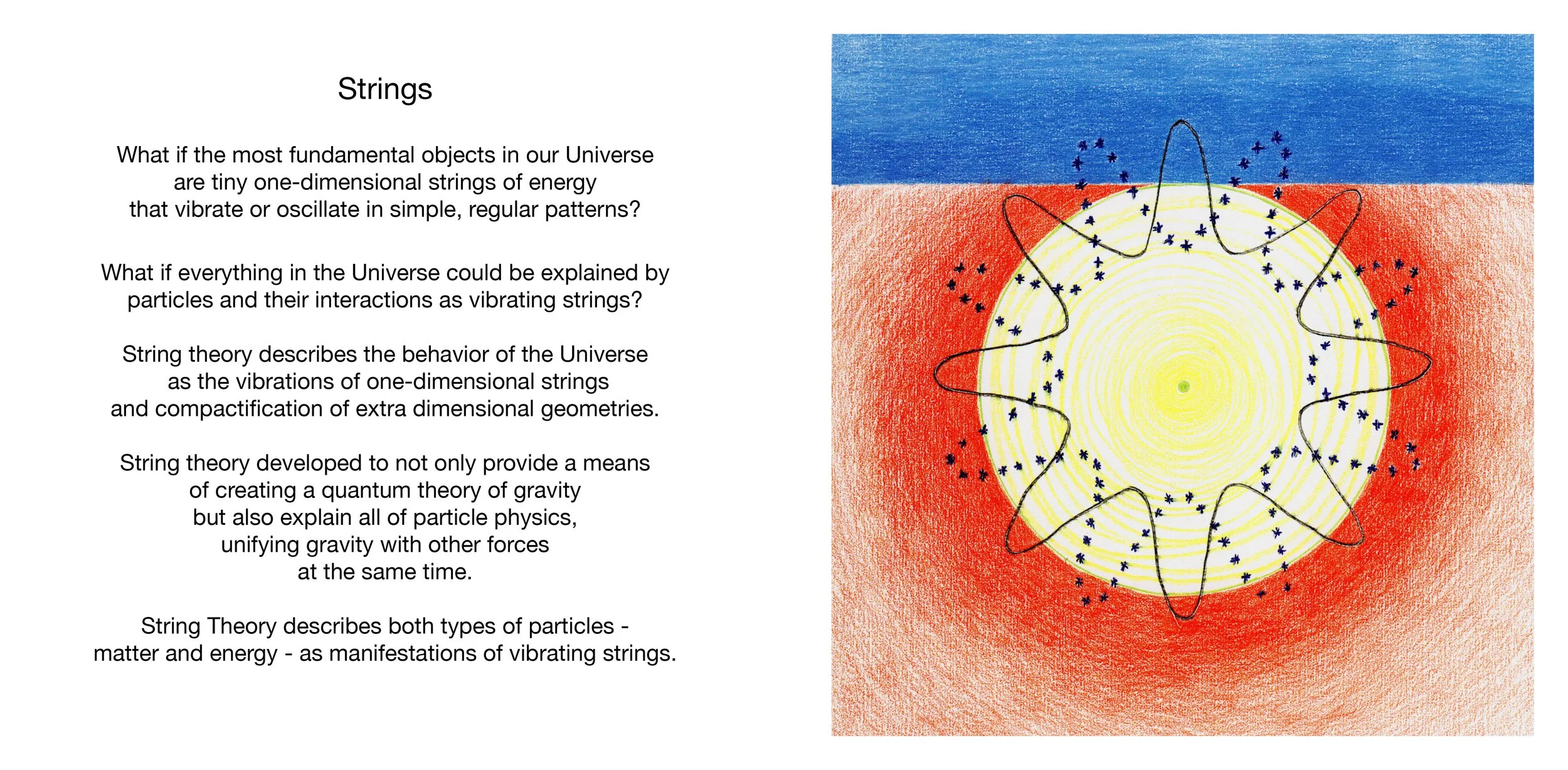 What if everything in the Universe could be explained by particles and their interactions as vibrating strings? Science is an interplay of theory and experiment. Be curious and creative. Imagine the unimaginable. The unknown is unfolding. Research is needed.